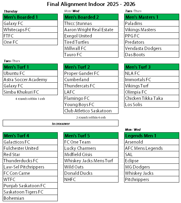 Please send your scheduling considerations for the indoor season to info@saskatoonadultsoccer.com BY Monday, August 25 at noon.