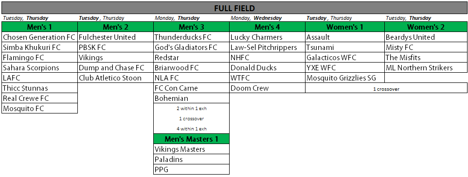 * If not all instalments or full team fees were originally paid, the outstanding fees will be disbursed among the players listed on the roster and include the team contact if they are not a player. Participants will be blacklisted until payment is received. The Individual Player Registration fee will not be refunded.
