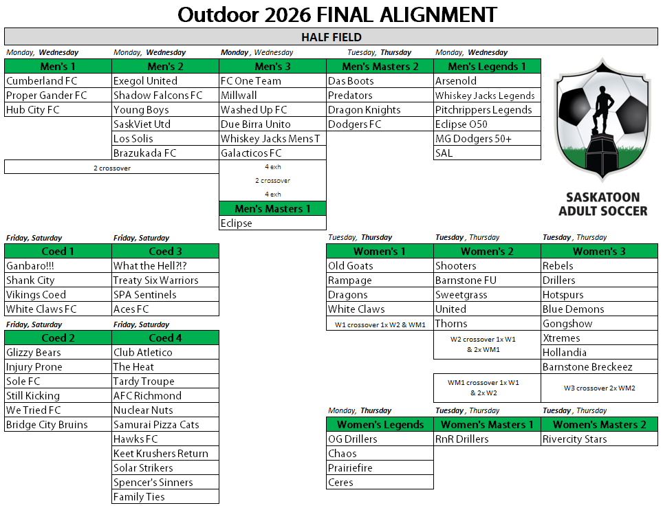 All details for outdoor including the Dates & Deadlines can be found under the MAIN MENU - INDOOR heading.